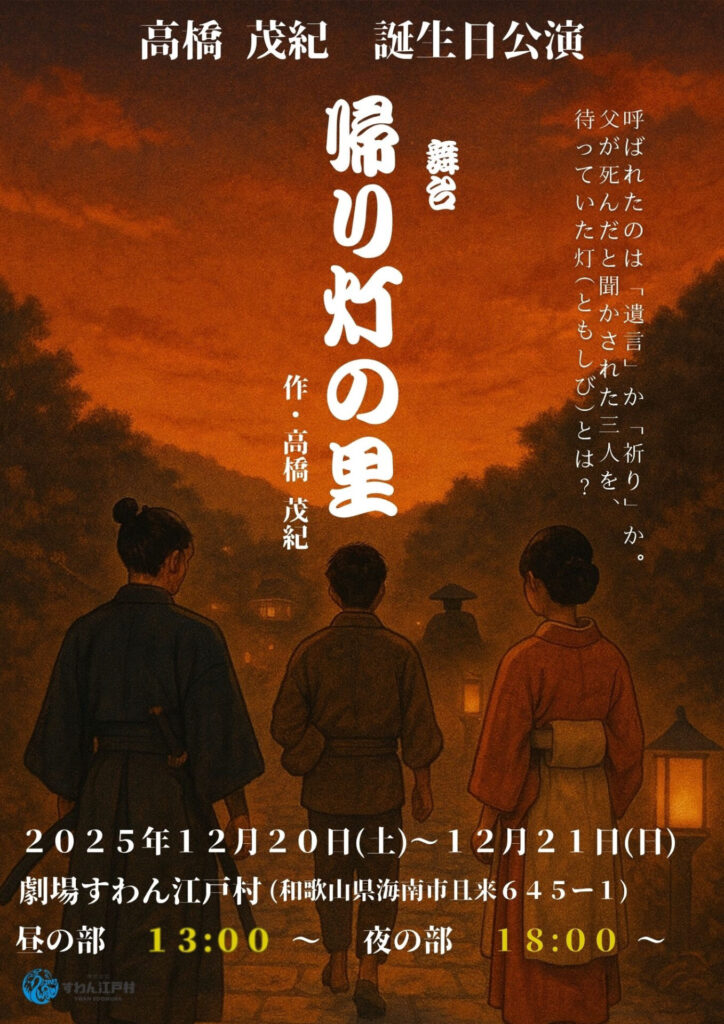 高橋茂紀が劇団紀州様すわん江戸村公演にゲスト出演いたします。どうか応援、よろしくお願いいたします。公演日は5.6.7.12.13.14.20.21.24.25日(20、21日は誕生日公演)になります。